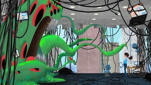 I illustrated and animated for this Intel spot. We animated some of the monsters in 3, but textured with my painted textures to give 2D hand drawn look.